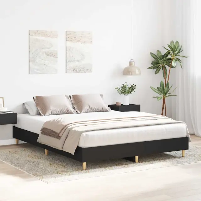 Zagotovite si boljši spanec s tem posteljnim okvirjem! Je prijeten dodatek za vsako spalnico. Vzdržljiv material: Inženirski les se ponaša z izjemno kakovostjo, gladko površino ter močjo, stabilnostjo in odpornostjo na vlago.Podnožje z letvami za optimalno podporo: Za podporo in zračnost ležišča je posteljni okvir opremljen z letvenim dnom.Stabilne in vzdržljive noge: Ta postelja ima trdne noge, ki zagotavljajo stabilnost, varnost in trdnost.Dobro je vedeti:Vzmetnica ni priložena tej postelji. Ponujamo različno izbiro ležišč. V naši trgovini si lahko ogledate ustrezne vzmetnice.Barva: ČrnaMaterial posteljnega okvirja: Inženirski les, trden les evkaliptusaMaterial letvic: Vezan lesCelotne dimenzije: 203 x 143 x 25 cm (D x Š x V)Velikost primerne vzmetnice: 140 x 200 cm (Š x D) (vzmetnica ni priložena)Potrebno sestavljanje: Da