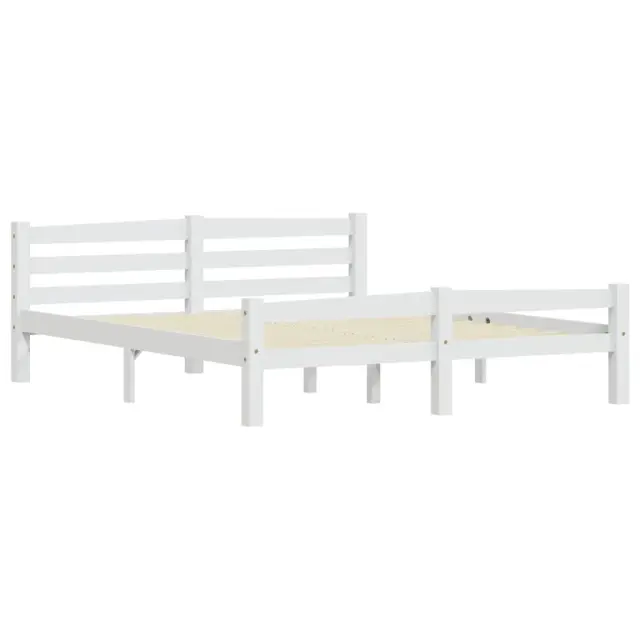 Posteljni okvir - Dvoposteljna postelja - Zakonska postelja bel iz trdne borovine 160x200 cm-J3036