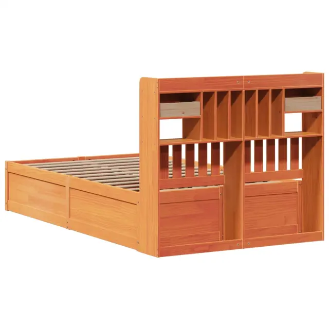 S tem lesenim posteljnim okvirjem lahko uživate v odličnem spancu! To je praktičen in dekorativen dodatek za vaše notranje prostore. Trdna borovina: Trdna borovina je čudovit naravni material. Borovina ima ravne vzorce, grče pa dajejo materialu njegov značilen, rustikalen videz.Močan posteljni okvir: Lesen okvir zagotavlja trdnost in stabilnost. Letvice iz vezanega lesa omogočajo dobro porazdelitev teže in zagotavljajo, da vzmetnica ostane na mestu ob vsakem zasuku in obračanju med spanjem.Funkcionalno vzglavje in podnožje: Z vzglavjem lesene postelje lahko ohranite vzmetnico na mestu. Poleg tega vzglavje zagotavlja odlično oporo hrbtu, ko sedite v postelji in berete ali gledate televizijo.Veliko prostora za shranjevanje: To elegantno vzglavje ima 3 priročne predelke in 3 predale, ki nudijo dovolj prostora za shranjevanje, da so vse vaše nočne potrebščine na dosegu roke. Dobro je vedeti:Vzmetnica ni priložena tej postelji. Ponujamo različno izbiro ležišč. V naši trgovini si lahko ogledate ustrezne vzmetnice.Barva: Voščeno rjavaMaterial posteljnega okvirja: Trdna borovinaMaterial letvic: Vezan lesCelotne dimenzije: 219,5 x 141,5 x 110 cm (D x Š x V)Velikost primerne vzmetnice: 135 x 190 cm (Š x D) (vzmetnica ni priložena)Dimenzije vzglavja: 141 x 23 x 110 cm (D x Š x V)S policami za shranjevanjePotrebno sestavljanje: DaPaket vsebuje:1 x Posteljni okvir1 x Vzglavje