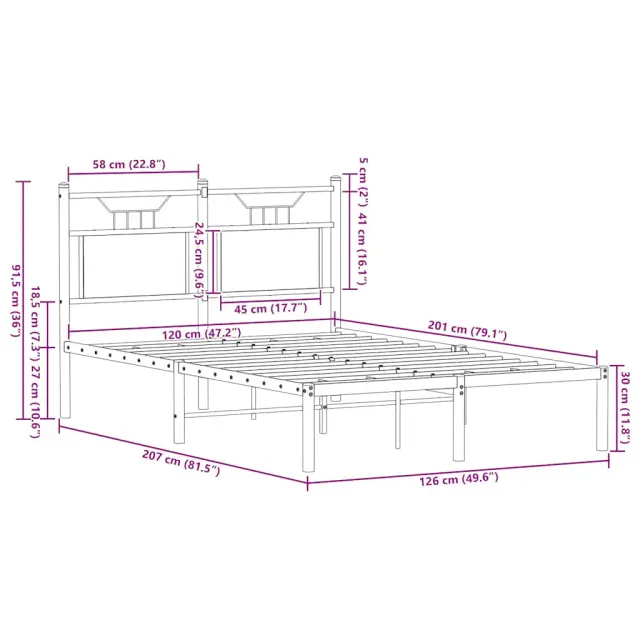 Zagotovite si boljši spanec s tem posteljnim okvirjem! Je prijeten dodatek za vsako spalnico. Stabilen in dolgotrajen okvir: Jeklo je močno, stabilno in trpežno, zato je idealna izbira za številne aplikacije, od proizvodnje pohištva do gradbeništva.Vsestransko vzglavje: Ta postelja je opremljena z vzglavjem, ki zagotavlja odlično oporo hrbtu, ko sedite v postelji in berete ali gledate televizijo, hkrati pa služi tudi kot dekorativni element.Dodaten prostor za shranjevanje: Za udobje ima posteljni podstavek pod seboj dodaten prostor, v katerem lahko shranite škatle za shranjevanje, ki niso vidne.Podnožje z letvami za optimalno podporo: Kovinski posteljni okvir je opremljen z letvenim dnom, ki zagotavlja oporo in zračnost ležišča. Dobro je vedeti:Vzmetnica ni priložena tej postelji. Ponujamo različno izbiro ležišč. V naši trgovini si lahko ogledate ustrezne vzmetnice.Barva: Dimljeni hrastMaterial: Inženirski les in jekloCelotne dimenzije: 207 x 126 x 91,5 cm (D x Š x V)Višina prostora pod posteljo: 27 cmVelikost primerne vzmetnice: 120 x 200 cm (Š x D) (vzmetnica ni priložena)Z vzglavjemPotrebno sestavljanje: Da