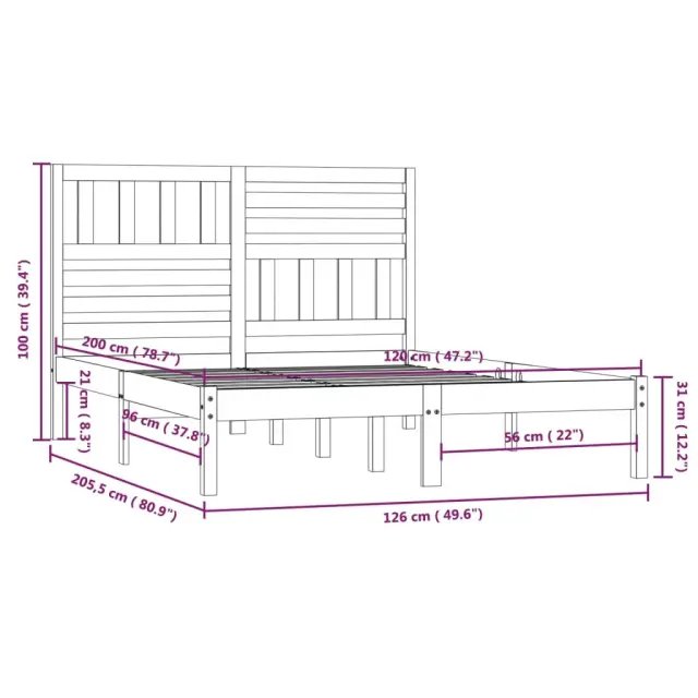 S tem lesenim posteljnim okvirjem lahko uživate v odličnem spancu! To je praktičen in dekorativen dodatek za vaše notranje prostore. Vrhunski material: Trdna borovina je čudovit naravni material. Površino obdelajte z oljem, voskom, lakom ali glazurnim premazom za močnejšo površino in enostavno čiščenje. Borovina ima ravne vzorce, grče pa dajejo materialu njegov značilen, rustikalen videz.Močan in stabilen okvir: Lesen okvir zagotavlja trdnost in stabilnost. Letveno dno iz trdne borovine vaši postelji zagotavlja dodatno podporo. Podaljša življenjsko dobo vaše vzmetnice, saj absorbira večino obremenitev in teže na postelji.Privlačen dizajn: Vzglavje je tako dekorativno kot tudi praktično. Dodaja edinstven stil in udobje. Dobro je vedeti:Vzmetnica ni priložena. V naši trgovini si lahko ogledate ustrezne vzmetnice.Nekateri deli vzglavja so zaradi prostorskih omejitev zapakirani v škatlah v okvirju postelje.Ta posteljni okvir je primeren za vzmetnico velikosti 120 x 200 cm.Material: Trdna borovina (neobdelana)Celotne dimenzije posteljnega okvirja: 205,5 x 126 x 100 cm (D x Š x V)Velikost primerne vzmetnice: 120 x 200 cm (Š x D) (vzmetnica ni priložena)Dimenzije vzglavja: 126 x 4 x 100 cm (Š x G x V)Potrebno sestavljanje: DaPaket vsebuje:1 x Posteljni okvir1 x Vzglavje