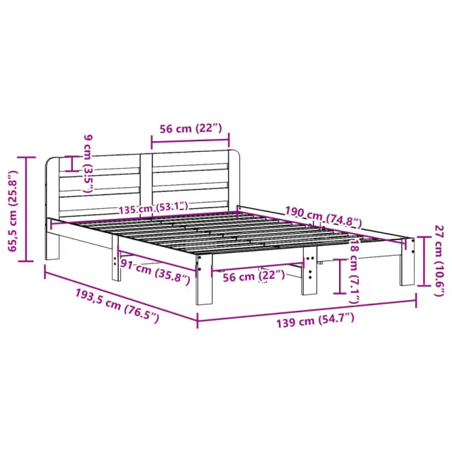 Zagotovite si boljši spanec s tem posteljnim okvirjem! Je prijeten dodatek za vsako spalnico. Stabilen in dolgotrajen okvir: Trdna borovina je znana po svoji trdnosti in trajnosti. Ravni vzorci in značilni vozli prispevajo k njenemu rustikalnemu čaru.Podnožje z letvami za optimalno podporo: Za podporo in zračnost ležišča je posteljni okvir opremljen z letvenim dnom.Dodaten prostor za shranjevanje: Za večje udobje je pod leseno posteljo dodaten prostor, v katerem lahko shranite škatle za shranjevanje, da bodo lepo skrite.Stabilne in vzdržljive noge: Ta postelja je podprta z robustnimi nogami, ki zagotavljajo stabilnost, varnost in trdnost.Vsestransko vzglavje: Ta panelna postelja je opremljena z vzglavjem, ki zagotavlja odlično oporo hrbtu, ko sedite v postelji in berete ali gledate televizijo, hkrati pa služi tudi kot dekorativni element. Dobro je vedeti:Vzmetnica ni priložena tej postelji. Ponujamo različno izbiro ležišč. V naši trgovini si lahko ogledate ustrezne vzmetnice.Barva: BelaMaterial: Trdna borovinaMaterial letvic: Vezan lesDimenzije: 193,5 x 139 x 65,5 cm (D x Š x V)Velikost primerne vzmetnice: 135 x 190 cm (Š x D) (vzmetnica ni priložena)Potrebno sestavljanje: Da