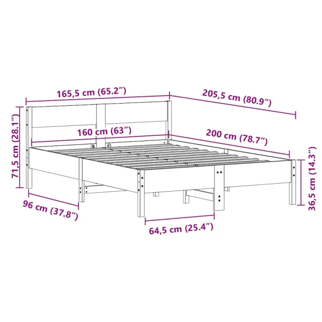 S tem lesenim posteljnim okvirjem lahko uživate v odličnem spancu! To je praktičen in dekorativen dodatek za vaše notranje prostore. Trdna borovina: Trdna borovina je čudovit naravni material. Borovina ima ravne vzorce, grče pa dajejo materialu njegov značilen, rustikalen videz.Letvice iz vezanega lesa: Letvice iz vezanega lesa omogočajo dobro porazdelitev teže in zagotavljajo, da vzmetnica ostane na mestu ob vsakem zasuku in obračanju med spanjem.Odlična opora: Vzglavje lesene postelje zagotavlja odlično oporo hrbtu, ko sedite v postelji in berete ali gledate televizijo. Dobro je vedeti:Vzmetnice niso priložene tej postelji. Ponujamo različno izbiro ležišč. V naši trgovini si lahko ogledate ustrezne vzmetnice.Barva: BelaMaterial: Trdna borovinaMaterial letvic: Vezan lesCelotne dimenzije: 205,5 x 165,5 x 71,5 cm (D x Š x V)Velikost primerne vzmetnice: 160 x 200 cm (Š x D) (vzmetnica ni priložena)Potrebno sestavljanje: Da