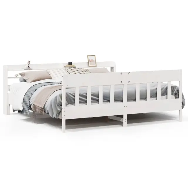 Zagotovite si boljši spanec s tem posteljnim okvirjem! Je prijeten dodatek za vsako spalnico. Stabilen in dolgotrajen okvir: Trdna borovina je znana po svoji trdnosti in trajnosti. Ravni vzorci in značilni vozli prispevajo k njenemu rustikalnemu čaru.Podnožje z letvami za optimalno podporo: Za podporo in zračnost ležišča je posteljni okvir opremljen z letvenim dnom.Vsestransko vzglavje: Ta posteljni okvir je opremljen z vzglavjem, ki zagotavlja odlično oporo hrbtu, ko sedite v postelji in berete ali gledate televizijo, hkrati pa služi tudi kot dekorativni element.Veliko prostora za shranjevanje: To elegantno vzglavje ima tri priročne police, ki ponujajo veliko prostora za shranjevanje, da bodo vaše večerne potrebščine na dosegu roke. Dobro je vedeti:Vzmetnica ni priložena tej postelji. Ponujamo različno izbiro ležišč. V naši trgovini si lahko ogledate ustrezne vzmetnice.Barva: BelaMaterial posteljnega okvirja: Trdna borovinaMaterial letvic: Vezan lesCelotne dimenzije: 218 x 190 x 82 cm (D x Š x V)Velikost primerne vzmetnice: 180 x 200 cm (Š x D) (vzmetnica ni priložena)S policami za shranjevanjePotrebno sestavljanje: DaPaket vsebuje:1 x Posteljni okvir1 x Vzglavje