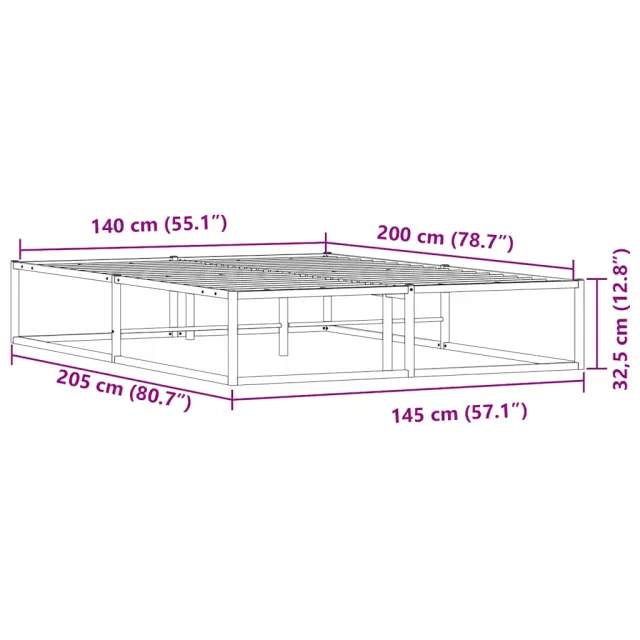 S tem kovinskim posteljnim okvirjem lahko v svoji spalnici ustvarite elegantno in klasično vzdušje! Stabilen in dolgotrajen okvir: Kovinski okvir, prevlečen s prašnim premazom, je močan, stabilen, vzdržljiv, odporen proti koroziji in ostrim vremenskim razmeram ter zagotavlja dolgotrajno delovanje.Podnožje z letvami za optimalno podporo: Za podporo in zračnost ležišča je posteljni okvir opremljen z letvenim dnom.Dodaten prostor za shranjevanje: Za večje udobje je pod posteljo dodaten prostor, v katerem lahko shranite škatle za shranjevanje, da bodo lepo skrite. Dobro je vedeti:Vzmetnica ni priložena tej postelji. Ponujamo različno izbiro ležišč. V naši trgovini si lahko ogledate ustrezne vzmetnice.Barva: BelaMaterial: Kovina s prašnim premazomDimenzije: 205 x 145 x 32,5 cm (D x Š x V)Spalna višina, od tal: 32,5 cmVelikost primerne vzmetnice: 140 x 200 cm (Š x D) (vzmetnica ni priložena)Potrebno sestavljanje: Da