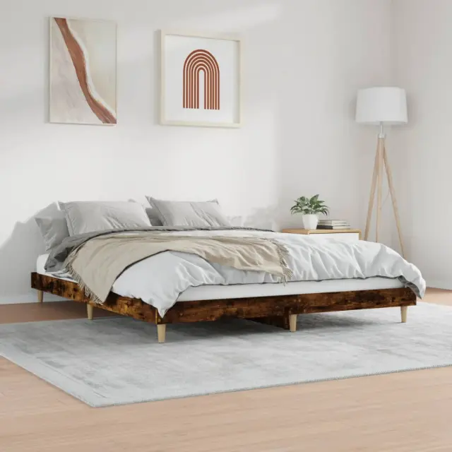 Zagotovite si boljši spanec s tem posteljnim okvirjem! Je prijeten dodatek za vsako spalnico. Vzdržljiv material: Inženirski les se ponaša z izjemno kakovostjo, gladko površino ter močjo, stabilnostjo in odpornostjo na vlago. Lesene noge: Postelja je podprta s čvrstimi lesenimi nogami, ki zagotavljajo njeno stabilnost, varnost in trdnost. Letvice iz vezanega lesa: Letvice iz vezanega lesa omogočajo dobro porazdelitev teže in zagotavljajo, da vzmetnica ostane na mestu ob vsakem zasuku in obračanju med spanjem. Dobro je vedeti: Vzmetnica ni priložena tej postelji. Ponujamo različno izbiro ležišč. V naši trgovini si lahko ogledate ustrezne vzmetnice.Barva: Dimljeni hrastMaterial posteljnega okvirja: Inženirski les, trden les evkaliptusaMaterial letvic: Vezan lesCelotne dimenzije: 203 x 153 x 20 cm (D x Š x V)Velikost primerne vzmetnice: 150 x 200 cm (Š x D) (vzmetnica ni priložena)Potrebno sestavljanje: Da
