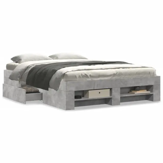 Zagotovite si boljši spanec s tem posteljnim okvirjem! Je prijeten dodatek za vsako spalnico. Vzdržljiv material: Posteljni okvir je izdelan iz inženirskega lesa. Inženirski les se ponaša z izjemno kakovostjo, gladko površino ter močjo, stabilnostjo in odpornostjo na vlago.Podnožje z letvami za optimalno podporo: Za podporo in zračnost ležišča je posteljni okvir opremljen z letvenim dnom.Funkcija shranjevanja: Ta posteljni okvir ima predale in odprte predelke za dobro organizacijo revij, knjig, igrač in drugih manjših predmetov. Dobro je vedeti:Vzmetnica ni priložena tej postelji. Ponujamo različno izbiro ležišč. V naši trgovini si lahko ogledate ustrezne vzmetnice.Barva: Betonsko sivaMaterial posteljnega okvirja: Inženirski lesMaterial letvic: Vezan lesCelotne dimenzije: 203 x 123 x 33 cm (D x Š x V)Dimenzije predelkov (vsak): 43,5 x 14,5 x 10 cm (D x Š x V)Dimenzije predalov (vsak): 79,5 x 28,5 x 18 cm (D x Š x V)Velikost primerne vzmetnice: 120 x 200 cm (Š x D) (vzmetnica ni priložena)Potrebno sestavljanje: Da