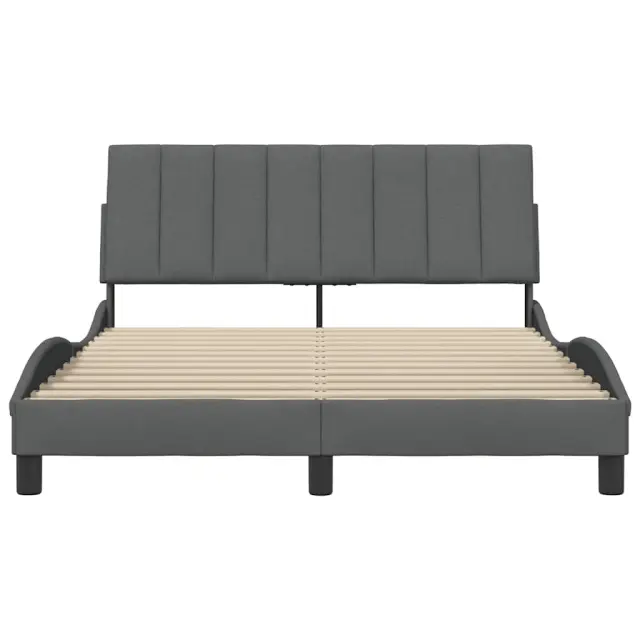 Zagotovite si boljši spanec s tem posteljnim okvirjem! Je prijeten dodatek za vsako spalnico. Mehak in trpežen material: Tkanina iz poliestra ponuja kombinacijo mehkobe, zračnosti in trpežnosti ter vam zagotavlja popolno udobje in prijetnost.Letvice za optimalno podporo: Ta posteljni okvir je opremljen z letvicami, ki zagotavljajo osnovno podporo in zračnost vašega ležišča.Vsestransko vzglavje: Ta posteljni okvir je opremljen z vzglavjem, ki zagotavlja odlično oporo hrbtu, ko sedite v postelji in berete ali gledate televizijo, hkrati pa služi tudi kot dekorativni element.Priročna zasnova: Vzglavna stranica ima zadrgo za preprosto namestitev, pripenjala na zadnji strani pa se lahko uporabijo za pritrditev LED lučk.Valovita stranica: Valoviti videz posteljnega okvirja je eleganten in prefinjen. Dekorju v vašem domu dodaja sodoben in eleganten pridih ter tako postane osrednja točka spalnice. Dobro je vedeti:Vzmetnica ni priložena tej postelji. Ponujamo različno izbiro ležišč. V naši trgovini si lahko ogledate ustrezne vzmetnice.Posteljni okvir:Barva: Temno sivaMaterial: Tkanina (100 % poliester), kovina, vezan les, inženirski lesCelotne dimenzije: 218 x 125 x 74,5 cm (D x Š x V)Velikost primerne vzmetnice: 120 x 200 cm (Š x D) (vzmetnica ni priložena)Oblazinjeno vzglavje:Barva: Temno sivaMaterial: Blago (100 % poliester)Material polnila: PP vlaknaDimenzije: 120 x 3 x 45 cm (D x Š x V)Paket vsebuje:1 x Posteljni okvir1 x Oblazinjeno vzglavje
