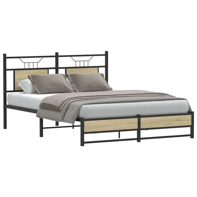 Zagotovite si boljši spanec s tem posteljnim okvirjem! Je prijeten dodatek za vsako spalnico. Stabilen in dolgotrajen okvir: Jeklo je močno, stabilno in trpežno, zato je idealna izbira za številne aplikacije, od proizvodnje pohištva do gradbeništva.Vsestransko vzglavje: Ta postelja je opremljena z vzglavjem, ki zagotavlja odlično oporo hrbtu, ko sedite v postelji in berete ali gledate televizijo, hkrati pa služi tudi kot dekorativni element.Dodaten prostor za shranjevanje: Za udobje ima posteljni podstavek pod seboj dodaten prostor, v katerem lahko shranite škatle za shranjevanje, ki niso vidne.Podnožje z letvami za optimalno podporo: Kovinski posteljni okvir je opremljen z letvenim dnom, ki zagotavlja oporo in zračnost ležišča. Dobro je vedeti:Vzmetnica ni priložena tej postelji. Ponujamo različno izbiro ležišč. V naši trgovini si lahko ogledate ustrezne vzmetnice.Barva: Sonoma hrastMaterial: Inženirski les in jekloCelotne dimenzije: 207 x 147 x 91,5 cm (D x Š x V)Višina prostora pod posteljo: 27 cmVelikost primerne vzmetnice: 140 x 200 cm (Š x D) (vzmetnica ni priložena)Z vzglavjemPotrebno sestavljanje: Da
