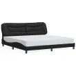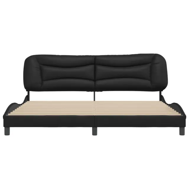 Zagotovite si boljši spanec s tem posteljnim okvirjem z vzglavjem! Je prijeten dodatek za vsako spalnico. Trpežno umetno usnje: Vrhunsko umetno usnje je zelo vzdržljiv material. Je odporno na madeže, zato ga lahko preprosto čistite z vlažno krpo. Gladka površina mu prav tako daje razkošen videz in lepoto pravega usnja.Letvice iz vezanega lesa: Letvice iz vezanega lesa omogočajo dobro porazdelitev teže in zagotavljajo, da vzmetnica ostane na mestu ob vsakem zasuku in obračanju med spanjem.Odlična podpora: Vzglavna stranica je napolnjena s PP vlakni za izjemno mehkobo in optimalno udobje ter zagotavlja odlično podporo hrbtu, ko sedite v postelji in berete ali gledate televizijo.Valovita stranica: Valoviti videz posteljnega okvirja je eleganten in prefinjen. Dekorju v vašem domu dodaja sodoben in eleganten pridih ter tako postane osrednja točka spalnice. Dobro je vedeti:Vzmetnica ni priložena tej postelji. Ponujamo različno izbiro ležišč. V naši trgovini si lahko ogledate ustrezne vzmetnice.Posteljni okvir z vzglavjem:Barva: ČrnaMaterial: Umetno usnje (75 % polivinilklorid, 5 % bombaž, 20 % poliester), kovina, trdna borovina, vezan lesCelotne dimenzije: 218 x 205 x 74,5 cm (D x Š x V)Velikost primerne vzmetnice: 200 x 200 cm (Š x D) (vzmetnica ni priložena)Oblazinjeno vzglavje:Barva: ČrnaMaterial: Umetno usnje (75 % polivinilklorid, 5 % bombaž, 20 % poliester)Material polnila: PP vlaknaDimenzije: 210 x 15 x 48 cm (D x Š x V)Primerna širina vzmetnice: 200 cmPotrebno sestavljanje: DaPaket vsebuje:1 x Posteljni okvir z vzglavjem1 x Oblazinjeno vzglavje