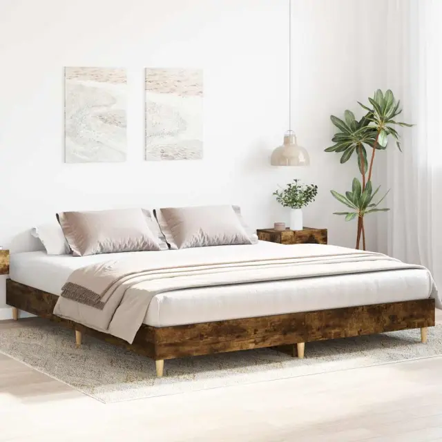 Zagotovite si boljši spanec s tem posteljnim okvirjem! Je prijeten dodatek za vsako spalnico. Vzdržljiv material: Inženirski les se ponaša z izjemno kakovostjo, gladko površino ter močjo, stabilnostjo in odpornostjo na vlago.Podnožje z letvami za optimalno podporo: Za podporo in zračnost ležišča je posteljni okvir opremljen z letvenim dnom.Stabilne in vzdržljive noge: Ta postelja ima trdne noge, ki zagotavljajo stabilnost, varnost in trdnost.Dobro je vedeti:Vzmetnica ni priložena tej postelji. Ponujamo različno izbiro ležišč. V naši trgovini si lahko ogledate ustrezne vzmetnice.Barva: Dimljeni hrastMaterial posteljnega okvirja: Inženirski les, trden les evkaliptusaMaterial letvic: Vezan lesCelotne dimenzije: 203 x 203 x 25 cm (D x Š x V)Velikost primerne vzmetnice: 200 x 200 cm (Š x D) (vzmetnica ni priložena)Potrebno sestavljanje: Da