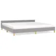 Zagotovite si boljši spanec s tem posteljnim okvirjem z vzglavjem! Je prijeten dodatek za vsako spalnico. Trpežno blago: Blago zagotavlja preprost in čist videz, poleg tega pa je zračno in trpežno.Podporne noge: Postelja je podprta s čvrstimi nogami, ki zagotavljajo njeno stabilnost, varnost in trdnost.Letvice iz vezanega lesa: Letvice iz vezanega lesa omogočajo dobro porazdelitev teže in zagotavljajo, da vzmetnica ostane na mestu ob vsakem zasuku in obračanju med spanjem. Opomba:Paket vsebuje samo posteljni okvir. Vzmetnica ni priložena. V naši trgovini si lahko ogledate ustrezne vzmetnice.Vsakemu izdelku je priložen priročnik za enostavno sestavljanje. Dobro je vedeti:Zaradi varčevanja s prostorom so nekateri deli ali blazine zapakirani v notranjost pohištva - preverite, ali so v predalih z zadrgo ali pod prevleko sedeža skriti kakšni sestavni deli.Barva: Svetlo sivaMaterial: Blago (100 % poliester), vezan les, konstruiran lesCelotne dimenzije: 207 x 206 x 50 cm (D x Š x V)Velikost primerne vzmetnice: 200 x 200 cm (Š x D) (vzmetnica ni priložena)