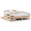 Zagotovite si boljši spanec s tem posteljnim okvirjem! Je prijeten dodatek za vsako spalnico. Stabilen in dolgotrajen okvir: Trdna borovina je znana po svoji trdnosti in trajnosti. Ravni vzorci in značilni vozli prispevajo k njenemu rustikalnemu čaru.Podnožje z letvami za optimalno podporo: Za podporo in zračnost ležišča je posteljni okvir opremljen z letvenim dnom.Vsestransko vzglavje: Ta posteljni okvir je opremljen z vzglavjem, ki zagotavlja odlično oporo hrbtu, ko sedite v postelji in berete ali gledate televizijo, hkrati pa služi tudi kot dekorativni element.Popolnoma izkoriščen prostor: Ta posteljni okvir ima spodaj dva predala, ki omogočata shranjevanje predmetov, kot so dodatna posteljnina, sezonska oblačila in igrače.Preprosto manevriranje: Ta predal za shranjevanje pod posteljo ima štiri kolesa, ki zagotavljajo gladko in lahkotno manevriranje pri drsenju pod posteljo in izpod nje. Dobro je vedeti:Vzmetnica ni priložena tej postelji. Ponujamo različno izbiro ležišč. V naši trgovini si lahko ogledate ustrezne vzmetnice.Potrebno sestavljanje: DaPosteljni okvir z vzglavjem:Material: Trdna borovina (neobdelana)Material letvic: Vezan lesDimenzije: 205,5 x 125,5 x 74,5 cm (D x Š x V)Velikost primerne vzmetnice: 120 x 200 cm (Š x D) (vzmetnica ni priložena)Predal:Material: Trdna borovina (neobdelana)Zunanje dimenzije: 95 x 55 x 16 cm (Š x G x V)Notranje dimenzije: 86,5 x 52,5 x 10 cm (Š x G x V)Maks. nosilnost (vsaka): 20 kgS štirimi kolesiPaket vsebuje:1 x Posteljni okvir z vzglavjem2 x Predal