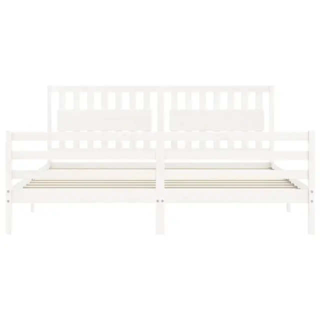 S tem lesenim posteljnim okvirjem lahko uživate v odličnem spancu! To je praktičen in dekorativen dodatek za vaše notranje prostore. Vzdržljiv material: Trdna borovina je čudovit naravni material. Borovina ima ravne vzorce, grče pa dajejo materialu njegov značilen, rustikalen videz. Ta postelja je izdelana iz trdnega borovega lesa, zato je trpežna in vzdržljiva.Letvice iz vezanega lesa: Letvice iz vezanega lesa zagotavljajo dobro porazdelitev teže, kar ležišču zagotavlja prepotrebno oporo in zračnost.Funkcionalno vzglavje in podnožje: Vzglavje in podnožje lesene postelje ohranjata ležišče na mestu. Poleg tega vzglavje zagotavlja odlično oporo hrbtu, ko sedite v postelji in berete ali gledate televizijo. Dobro je vedeti: Vzmetnica ni priložena tej postelji. Ponujamo različno izbiro ležišč. V naši trgovini si lahko ogledate ustrezne vzmetnice.Nekateri deli vzglavja so zaradi prostorskih omejitev zapakirani v škatlah v okvirju postelje.Barva: BelaMaterial: Trdna borovinaCelotne dimenzije postelje: 205,5 x 205,5 x 100 cm (D x Š x V)Višina prostora pod posteljo: 21 cmPrimerna velikost vzmetnice (vzmetnica ni vključena): 200 x 200 cm (Š x D)Potrebno sestavljanje: Da