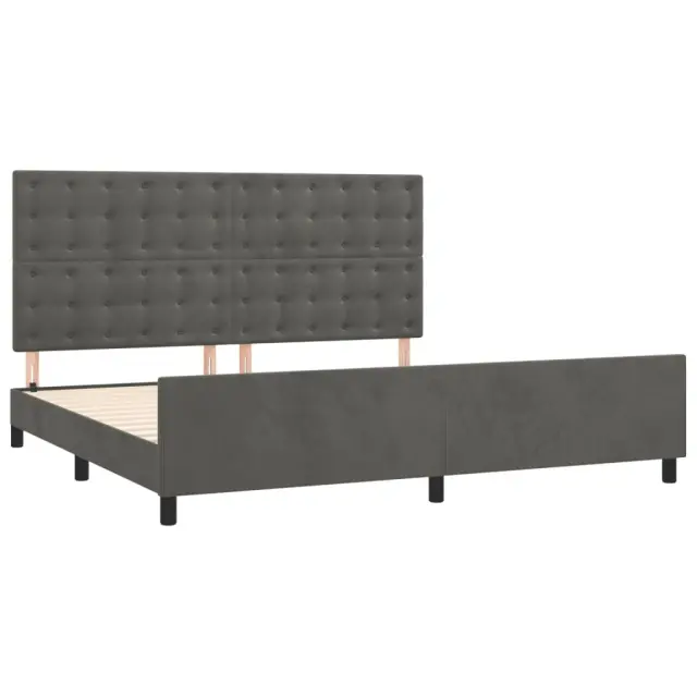 Zagotovite si boljši spanec s tem posteljnim okvirjem z vzglavjem! Je prijeten dodatek za vsako spalnico. Mehak žamet: Žamet je mehka in razkošna tkanina, ki jo prepoznamo po gostem kupu enakomerno rezanih gladkih vlaken. Žametna tkanina ima značilen mehak občutek, zaradi česar je prijetna na dotik.Nastavljiva višina: Vzglavje postelje je nastavljivo po višini po vaših željah.Podporne noge: Postelja je podprta s čvrstimi nogami, ki zagotavljajo njeno stabilnost, varnost in trdnost.Letvice iz vezanega lesa: Letvice iz vezanega lesa omogočajo dobro porazdelitev teže in zagotavljajo, da vzmetnica ostane na mestu ob vsakem zasuku in obračanju med spanjem.Udobna opora: To vzglavje za posteljo vam zagotavlja odlično oporo za hrbet, ko sedite na postelji in berete ali gledate filme. Opomba:Paket vsebuje samo posteljni okvir. Vzmetnica ni priložena. V naši trgovini si lahko ogledate ustrezne vzmetnice.Vsakemu izdelku je priložen priročnik za enostavno sestavljanje.Barva: Temno sivaMaterial: Žamet (100 % poliester), trden macesnov les, vezan les, inženirski lesMaterial polnila: PenaCelotne dimenzije: 203 x 206 x 118/128 cm (D x Š x V)Velikost primerne vzmetnice: 200 x 200 cm (Š x D) (vzmetnica ni priložena)Paket vsebuje:1 x Posteljni okvir z vznožjem1 x Vzglavje