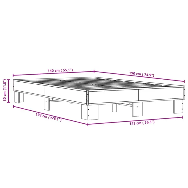 Zagotovite si boljši spanec s tem posteljnim okvirjem! Je prijeten dodatek za vsako spalnico. Vzdržljiv material: Inženirski les se ponaša z izjemno kakovostjo, gladko površino ter močjo, stabilnostjo in odpornostjo na vlago.Kovinske noge: Postelja je podprta s čvrstimi kovinskimi nogami, ki zagotavljajo njeno stabilnost, varnost in trdnost.Letvice iz vezanega lesa: Letvice iz vezanega lesa omogočajo dobro porazdelitev teže in zagotavljajo, da vzmetnica ostane na mestu ob vsakem zasuku in obračanju med spanjem. Dobro je vedeti:Vzmetnica ni priložena tej postelji. Ponujamo različno izbiro ležišč. V naši trgovini si lahko ogledate ustrezne vzmetnice.Barva: Rjav hrastMaterial posteljnega okvirja: Inženirski les, kovinaMaterial letvic: Vezan lesCelotne dimenzije: 193 x 143 x 30 cm (D x Š x V)Velikost primerne vzmetnice: 140 x 190 cm (Š x D) (vzmetnica ni priložena)Maksimalna nosilnost: 120 kgPotrebno sestavljanje: Da