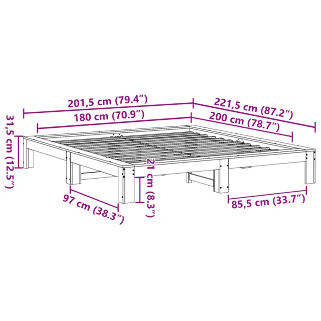 Zagotovite si boljši spanec s tem posteljnim okvirjem! Je prijeten dodatek za vsako spalnico. Stabilen in dolgotrajen okvir: Trdna borovina je znana po svoji trdnosti in trajnosti. Ravni vzorci in značilni vozli prispevajo k njenemu rustikalnemu čaru.Podnožje z letvami za optimalno podporo: Za podporo in zračnost ležišča je posteljni okvir opremljen z letvenim dnom.Stabilne in vzdržljive noge: Ta postelja je podprta z robustnimi nogami, ki zagotavljajo stabilnost, varnost in trdnost. Dobro je vedeti:Vzmetnica ni priložena tej postelji. Ponujamo različno izbiro ležišč. V naši trgovini si lahko ogledate ustrezne vzmetnice.Barva: Voščeno rjavaMaterial posteljnega okvirja: Trdna borovinaCelotne dimenzije: 221,5 x 201,5 x 31,5 cm (D x Š x V)Velikost primerne vzmetnice: 180 x 200 cm (Š x D) (vzmetnica ni priložena)Z letvenim podomPotrebno sestavljanje: Da