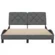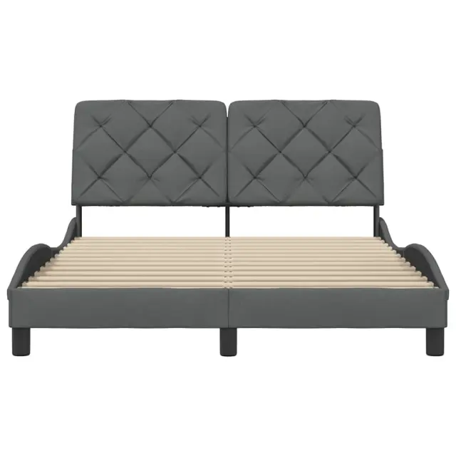 Zagotovite si boljši spanec s tem posteljnim okvirjem! Je prijeten dodatek za vsako spalnico. Mehak in trpežen material: Tkanina iz poliestra ponuja kombinacijo mehkobe, zračnosti in trpežnosti ter vam zagotavlja popolno udobje in prijetnost.Letvice za optimalno podporo: Ta posteljni okvir je opremljen z letvicami, ki zagotavljajo osnovno podporo in zračnost vašega ležišča.Vsestransko vzglavje: Ta posteljni okvir je opremljen z vzglavjem, ki zagotavlja odlično oporo hrbtu, ko sedite v postelji in berete ali gledate televizijo, hkrati pa služi tudi kot dekorativni element.Priročna zasnova: Vzglavna stranica ima zadrgo za preprosto namestitev, pripenjala na zadnji strani pa se lahko uporabijo za pritrditev LED lučk.Valovita stranica: Valoviti videz posteljnega okvirja je eleganten in prefinjen. Dekorju v vašem domu dodaja sodoben in eleganten pridih ter tako postane osrednja točka spalnice. Dobro je vedeti:Vzmetnica ni priložena tej postelji. Ponujamo različno izbiro ležišč. V naši trgovini si lahko ogledate ustrezne vzmetnice.Posteljni okvir:Barva: Temno sivaMaterial: Tkanina (100 % poliester), kovina, vezan les, inženirski lesCelotne dimenzije: 218 x 125 x 74,5 cm (D x Š x V)Velikost primerne vzmetnice: 120 x 200 cm (Š x D) (vzmetnica ni priložena)Oblazinjeno vzglavje:Barva: Temno sivaMaterial: Blago (100 % poliester)Material polnila: PP vlaknaDimenzije: 122 x 6 x 48 cm (D x Š x V)Paket vsebuje:1 x Posteljni okvir1 x Oblazinjeno vzglavje