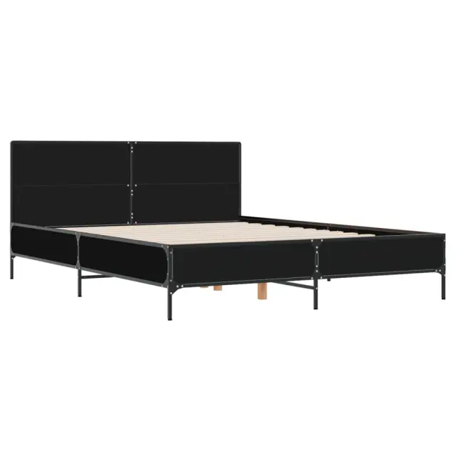 Zagotovite si boljši spanec s tem posteljnim okvirjem! Je prijeten dodatek za vsako spalnico. Vzdržljiv material: Inženirski les se ponaša z izjemno kakovostjo, gladko površino ter močjo, stabilnostjo in odpornostjo na vlago. Kovinske noge in letvice iz vezanega lesa: Okvir postelje je opremljen s kovinskimi nogami in letvicami iz vezanega lesa, ki ležišču nudijo potrebno oporo in zračnost.Odlična podpora: Vzglavje zagotavlja odlično oporo hrbtu, ko sedite v postelji in berete ali gledate televizijo. Dobro je vedeti: Vzmetnica ni priložena tej postelji. Ponujamo različno izbiro ležišč. V naši trgovini si lahko ogledate ustrezne vzmetnice.Barva: ČrnaMaterial posteljnega okvirja: Inženirski les, kovinaMaterial letvic: Vezan lesCelotne dimenzije: 203 x 153 x 80 cm (D x Š x V)Velikost primerne vzmetnice: 150 x 200 cm (Š x D) (vzmetnica ni priložena)Potrebno sestavljanje: Da