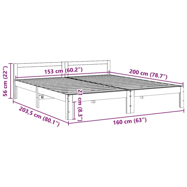 Zagotovite si boljši spanec s tem posteljnim okvirjem! Je prijeten dodatek za vsako spalnico. Stabilen in dolgotrajen okvir: Trdna borovina je znana po svoji trdnosti in trajnosti. Ravni vzorci in značilni vozli prispevajo k njenemu rustikalnemu čaru.Vzmetna škatla ni potrebna: Okvir postelje ima letveno podlago, ki zagotavlja odlično oporo in zračnost za ležišče, zato ni potrebna vzmetnica.Stabilne in vzdržljive noge: Ta postelja je podprta z robustnimi nogami, ki zagotavljajo stabilnost, varnost in trdnost.Inovativna povezovalna zasnova: Okvir za posteljo je zasnovan s predhodno izvrtanimi luknjami, tako da lahko zlahka združite dva posteljna okvirja in ustvarite zakonsko posteljo. Poleg tega lahko dodate več enojnih postelj in ustvarite veliko družinsko posteljo za tri, štiri ali več oseb, ki je idealna za družine, goste ali skupne bivalne prostore.Barva: BelaMaterial posteljnega okvirja: Trdna borovinaMaterial letvic: Vezan lesDimenzije: 203,5 x 160 x 56 cm (D x Š x V)Višina prostora pod posteljo: 21 cmVelikost primerne vzmetnice: 160 x 200 cm (Š x D) (vzmetnica ni priložena)Maks. nosilnost: 200 kgPredhodno izvrtane luknje za enostavno povezovanje v družinsko posteljoPotrebno sestavljanje: Da