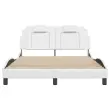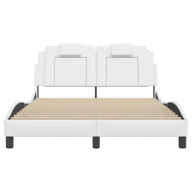 Zagotovite si boljši spanec s tem posteljnim okvirjem z vzglavjem! Je prijeten dodatek za vsako spalnico. Trpežno umetno usnje: Vrhunsko umetno usnje je zelo vzdržljiv material. Je odporno na madeže, zato ga lahko preprosto čistite z vlažno krpo. Gladka površina mu prav tako daje razkošen videz in lepoto pravega usnja.Letvice iz vezanega lesa: Letvice iz vezanega lesa omogočajo dobro porazdelitev teže in zagotavljajo, da vzmetnica ostane na mestu ob vsakem zasuku in obračanju med spanjem.Odlična podpora: Vzglavna stranica je napolnjena s peno za izjemno mehkobo in optimalno udobje ter zagotavlja odlično podporo hrbtu, ko sedite v postelji in berete ali gledate televizijo.Valovita stranica: Valoviti videz posteljnega okvirja je eleganten in prefinjen. Dekorju v vašem domu dodaja sodoben in eleganten pridih ter tako postane osrednja točka spalnice. Dobro je vedeti:Vzmetnica ni priložena tej postelji. Ponujamo različno izbiro ležišč. V naši trgovini si lahko ogledate ustrezne vzmetnice.Posteljni okvir z vzglavjem:Barva: BelaMaterial: Umetno usnje (75 % polivinilklorid, 5 % bombaž, 20 % poliester), kovina, trdna borovina, vezan lesCelotne dimenzije: 218 x 125 x 74,5 cm (D x Š x V)Velikost primerne vzmetnice: 120 x 200 cm (Š x D) (vzmetnica ni priložena)Oblazinjeno vzglavje:Barva: BelaMaterial: Umetno usnje (75 % polivinilklorid, 5 % bombaž, 20 % poliester)Material polnila: PenaDimenzije: 120 x 15 x 49 cm (D x Š x V)Primerna širina vzmetnice: 120 cmPotrebno sestavljanje: DaPaket vsebuje:1 x Posteljni okvir z vzglavjem1 x Oblazinjeno vzglavje