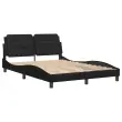 Zagotovite si boljši spanec s tem posteljnim okvirjem z vzglavjem! Je prijeten dodatek za vsako spalnico. Trpežno umetno usnje: Vrhunsko umetno usnje je zelo vzdržljiv material. Je odporno na madeže, zato ga lahko preprosto čistite z vlažno krpo. Gladka površina mu prav tako daje razkošen videz in lepoto pravega usnja.Letvice iz vezanega lesa: Letvice iz vezanega lesa omogočajo dobro porazdelitev teže in zagotavljajo, da vzmetnica ostane na mestu ob vsakem zasuku in obračanju med spanjem.Odlična podpora: Vzglavna stranica je napolnjena s peno za izjemno mehkobo in optimalno udobje ter zagotavlja odlično podporo hrbtu, ko sedite v postelji in berete ali gledate televizijo.Priročna zasnova: Oblazinjeno vzglavje ima zadrgo za enostavno namestitev.Valovita stranica: Valoviti videz posteljnega okvirja je eleganten in prefinjen. Dekorju v vašem domu dodaja sodoben in eleganten pridih ter tako postane osrednja točka spalnice. Dobro je vedeti:Vzmetnica ni priložena tej postelji. Ponujamo različno izbiro ležišč. V naši trgovini si lahko ogledate ustrezne vzmetnice.Posteljni okvir z vzglavjem:Barva: ČrnaMaterial: Umetno usnje (75 % polivinilklorid, 5 % bombaž, 20 % poliester), kovina, trdna borovina, vezan lesCelotne dimenzije: 218 x 145 x 74,5 cm (D x Š x V)Velikost primerne vzmetnice: 140 x 200 cm (Š x D) (vzmetnica ni priložena)Oblazinjeno vzglavje:Barva: ČrnaMaterial: Umetno usnje (75 % polivinilklorid, 5 % bombaž, 20 % poliester)Material polnila: PenaDimenzije: 140 x 3 x 48 cm (D x Š x V)Primerna širina vzmetnice: 140 cmPotrebno sestavljanje: DaPaket vsebuje:1 x Posteljni okvir z vzglavjem1 x Oblazinjeno vzglavje