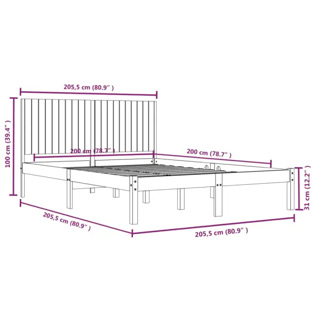 Ustvarite moderno spalnico s tem lesenim posteljnim okvirjem! To je praktičen in dekorativen dodatek za vaše notranje prostore. Vrhunski material: trdna borovina je čudovit naravni material. Borovina ima ravne vzorce, grče pa dajejo materialu njegov značilen, rustikalen videz.Močan in stabilen okvir: Leseni okvirji zagotavljajo trdnost in stabilnost.Udobno vzglavje: Klasično vzglavje omogoča udoben počitek med branjem ali gledanjem filma.Privlačen dizajn: Vzglavje je oblikovano tako, da je dekorativno in praktično. Dodaja edinstven stil in udobje. Dobro je vedeti:Paket vsebuje samo posteljni okvir. Vzmetnica ni priložena. V naši trgovini si lahko ogledate ustrezne vzmetnice.Nekateri deli vzglavja so zaradi prostorskih omejitev zapakirani v škatlah v okvirju postelje.Ta posteljni okvir je primeren za vzmetnico velikosti 200x200 cm.Barva: BelaMaterial: Trdna borovinaDimenzije posteljnega okvirja: 205,5 x 205,5 x 31 cm (D x Š x V)Dimenzije vzglavja: 205,5 x 4 x 100 cm (Š x G x V)Velikost primerne vzmetnice: 200 x 200 cm (Š x D) (vzmetnica ni priložena)Potrebno sestavljanje: DaPaket vsebuje:1 x Posteljni okvir1 x Vzglavje