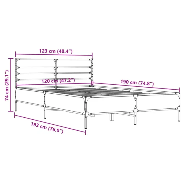 Zagotovite si boljši spanec s tem posteljnim okvirjem! Je prijeten dodatek za vsako spalnico. Vzdržljiv material: Inženirski les se ponaša z izjemno kakovostjo, gladko površino ter močjo, stabilnostjo in odpornostjo na vlago. Kovinske noge in letvice iz vezanega lesa: Okvir postelje je opremljen s kovinskimi nogami in letvicami iz vezanega lesa, ki ležišču nudijo potrebno oporo in zračnost.Odlična podpora: Vzglavje zagotavlja odlično oporo hrbtu, ko sedite v postelji in berete ali gledate televizijo. Dobro je vedeti: Vzmetnica ni priložena tej postelji. Ponujamo različno izbiro ležišč. V naši trgovini si lahko ogledate ustrezne vzmetnice.Barva: Sonoma hrastMaterial posteljnega okvirja: Inženirski les, kovinaMaterial letvic: Vezan lesCelotne dimenzije: 193 x 123 x 74 cm (D x Š x V)Velikost primerne vzmetnice: 120 x 190 cm (Š x D) (vzmetnica ni priložena)Potrebno sestavljanje: Da