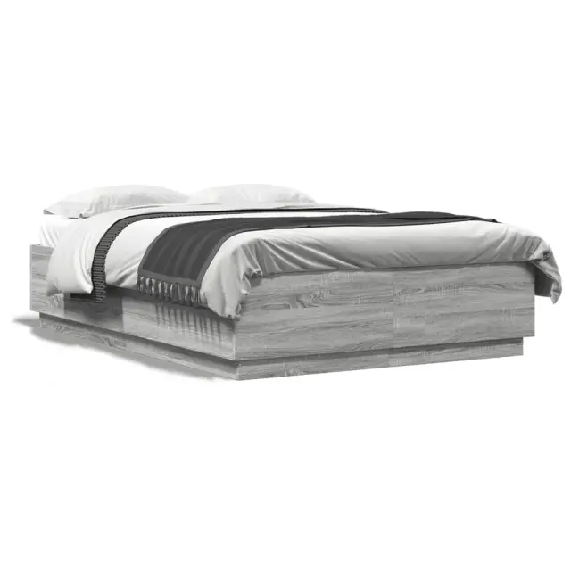 Zagotovite si boljši spanec s tem posteljnim okvirjem! Je prijeten dodatek za vsako spalnico. Vzdržljiv material: Inženirski les se ponaša z izjemno kakovostjo, gladko površino ter močjo, stabilnostjo in odpornostjo na vlago.Trdne letvice: Letvice iz vezanega lesa omogočajo dobro porazdelitev teže in zagotavljajo, da vzmetnica ostane na mestu ob vsakem zasuku in obračanju med spanjem.Moderna zasnova: Svojim notranjim prostorom dodajte moderen stil! Moderen stil notranjih prostorov vključuje čiste linije, minimalističen videz in naravno svetlobo. Dobro je vedeti:Vzmetnica ni priložena tej postelji. Ponujamo različno izbiro ležišč. V naši trgovini si lahko ogledate ustrezne vzmetnice.Barva: Siva sonoma Material posteljnega okvirja: Inženirski lesMaterial letvic: Vezan lesCelotne dimenzije: 203 x 163 x 40 cm (D x Š x V)Velikost primerne vzmetnice: 160 x 200 cm (Š x D) (vzmetnica ni priložena)Potrebno sestavljanje: Da