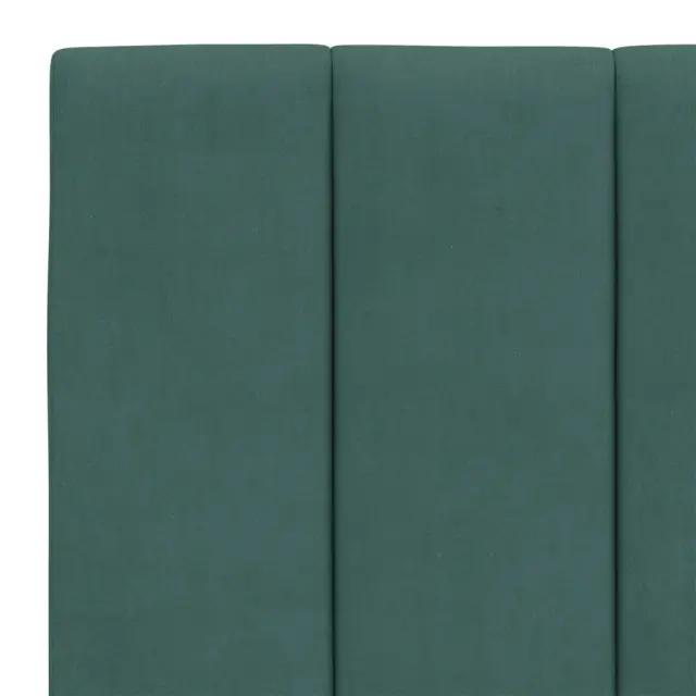 Zagotovite si boljši spanec s tem posteljnim okvirjem z vzglavjem! Je prijeten dodatek za vsako spalnico. Mehak žamet: Žamet je mehka in udobna tkanina, ki je prijetna do kože.Letvice iz vezanega lesa: Letvice iz vezanega lesa omogočajo dobro porazdelitev teže in zagotavljajo, da vzmetnica ostane na mestu ob vsakem zasuku in obračanju med spanjem.Odlična podpora: Vzglavna stranica je napolnjena s peno za izjemno mehkobo in optimalno udobje ter zagotavlja odlično podporo hrbtu, ko sedite v postelji in berete ali gledate televizijo.Priročna zasnova: Vzglavna stranica ima zadrgo za preprosto namestitev, pripenjala na zadnji strani pa se lahko uporabijo za pritrditev LED lučk.Valovita stranica: Valoviti videz posteljnega okvirja je eleganten in prefinjen. Dekorju v vašem domu dodaja sodoben in eleganten pridih ter tako postane osrednja točka spalnice. Dobro je vedeti:Vzmetnica ni priložena tej postelji. Ponujamo različno izbiro ležišč. V naši trgovini si lahko ogledate ustrezne vzmetnice.Posteljni okvir z vzglavjem:Barva: Temno zelenaMaterial: Žamet (100 % poliester), kovina, trdna borovina, vezan les, inženirski lesCelotne dimenzije: 218 x 145 x 74,5 cm (D x Š x V)Velikost primerne vzmetnice: 140 x 200 cm (Š x D) (vzmetnica ni priložena)Oblazinjeno vzglavje:Barva: Temno zelenaMaterial: Žamet (100 % poliester)Material polnila: PenaDimenzije: 140 x 3 x 45 cm (D x Š x V)Primerna širina vzmetnice: 140 cmPotrebno sestavljanje: DaPaket vsebuje:1 x Posteljni okvir z vzglavjem1 x Oblazinjeno vzglavje