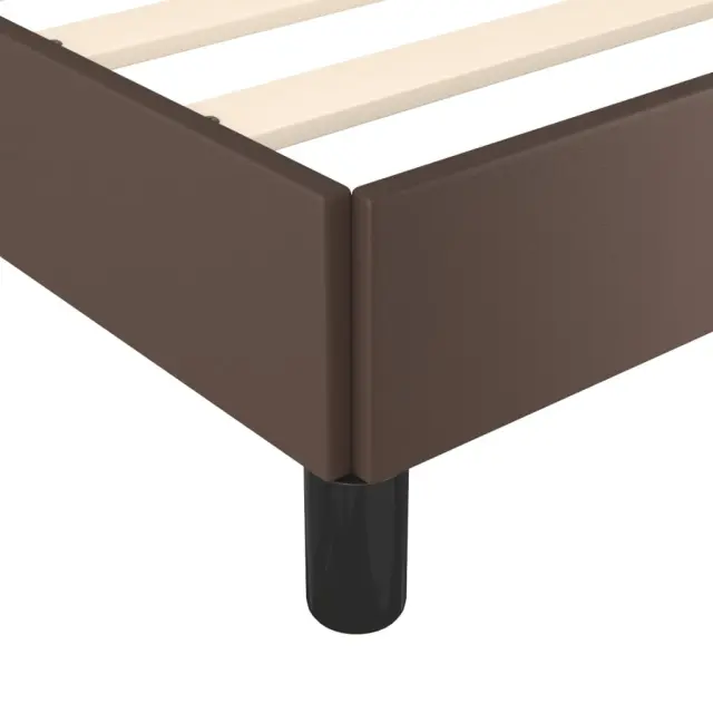 Zagotovite si boljši spanec s tem posteljnim okvirjem! Je prijeten dodatek za vsako spalnico. Trpežno umetno usnje: Vrhunsko umetno usnje je zelo vzdržljiv material. Je odporno na madeže, zato ga lahko preprosto čistite z vlažno krpo. Gladka površina mu prav tako daje razkošen videz in lepoto pravega usnja.Podporne noge: Postelja je podprta s čvrstimi nogami, ki zagotavljajo njeno stabilnost, varnost in trdnost.Letvice iz vezanega lesa: Letvice iz vezanega lesa omogočajo dobro porazdelitev teže in zagotavljajo, da vzmetnica ostane na mestu ob vsakem zasuku in obračanju med spanjem. Opomba:Paket vsebuje samo posteljni okvir. Vzmetnica ni priložena. V naši trgovini si lahko ogledate ustrezne vzmetnice.Vsakemu izdelku je priložen priročnik za enostavno sestavljanje.Barva: RjavaMaterial: Umetno usnje (75 % polivinilklorid, 5 % bombaž, 20 % poliester), vezan les, konstruiran lesCelotne dimenzije: 203 x 143 x 35 cm (D x Š x V)Velikost primerne vzmetnice: 140 x 200 cm (Š x D) (vzmetnica ni priložena)