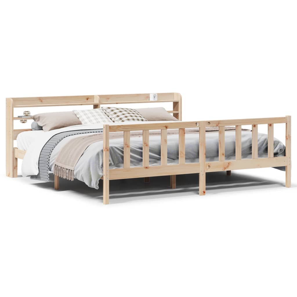 S tem lesenim posteljnim okvirjem lahko uživate v odličnem spancu! To je praktičen in dekorativen dodatek za vaše notranje prostore. Trdna borovina: Trdna borovina je čudovit naravni material. Borovina ima ravne vzorce, grče pa dajejo materialu njegov značilen, rustikalen videz.Praktične letvice: Letvice zagotavljajo dobro porazdelitev teže, kar ležišču zagotavlja prepotrebno oporo in zračnost.Veliko prostora za shranjevanje: To elegantno posteljno vzglavje ima dve priročni polici, ki ponujata veliko prostora za shranjevanje, da bodo vaše večerne potrebščine na dosegu roke.Samostoječe vzglavje: Samostoječe vzglavje ponuja brezskrbno rešitev za enostavno postavitev in premikanje brez potrebe po vgradnji na steno. Dobro je vedeti: Vzmetnica ni priložena tej postelji. Ponujamo različno izbiro ležišč. V naši trgovini si lahko ogledate ustrezne vzmetnice.Material: Trdna borovina (neobdelana)Celotne dimenzije: 218 x 190 x 82 cm (D x Š x V)Velikost primerne vzmetnice: 180 x 200 cm (Š x D) (vzmetnica ni priložena)S policami za shranjevanjePotrebno sestavljanje: Da