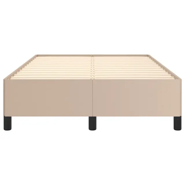 Zagotovite si boljši spanec s tem posteljnim okvirjem! Je prijeten dodatek za vsako spalnico. Trpežno umetno usnje: Vrhunsko umetno usnje je zelo vzdržljiv material. Je odporno na madeže, zato ga lahko preprosto čistite z vlažno krpo. Gladka površina mu prav tako daje razkošen videz in lepoto pravega usnja.Podporne noge: Postelja je podprta s čvrstimi nogami, ki zagotavljajo njeno stabilnost, varnost in trdnost.Letvice iz vezanega lesa: Letvice iz vezanega lesa omogočajo dobro porazdelitev teže in zagotavljajo, da vzmetnica ostane na mestu ob vsakem zasuku in obračanju med spanjem. Opomba:Paket vsebuje samo posteljni okvir. Vzmetnica ni priložena. V naši trgovini si lahko ogledate ustrezne vzmetnice.Vsakemu izdelku je priložen priročnik za enostavno sestavljanje.Barva: KapučinoMaterial: Umetno usnje (75 % polivinilklorid, 5 % bombaž, 20 % poliester), vezan les, konstruiran lesCelotne dimenzije: 203 x 123 x 35 cm (D x Š x V)Velikost primerne vzmetnice: 120 x 200 cm (Š x D) (vzmetnica ni priložena)