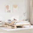 Zagotovite si boljši spanec s tem posteljnim okvirjem! Je prijeten dodatek za vsako spalnico. Stabilen in dolgotrajen okvir: Trdna borovina je znana po svoji trdnosti in trajnosti. Ravni vzorci in značilni vozli prispevajo k njenemu rustikalnemu čaru.Podnožje z letvami za optimalno podporo: Za podporo in zračnost ležišča je posteljni okvir opremljen z letvenim dnom.Popolnoma izkoriščen prostor: To posteljno dno ima spodaj dva predala, ki omogočata shranjevanje predmetov, kot so dodatna posteljnina, sezonska oblačila in igrače.Stabilne in vzdržljive noge: Ta leseni posteljni okvir je podprt z robustnimi nogami, ki zagotavljajo stabilnost, varnost in trdnost.Preprosto manevriranje: Ta predal za shranjevanje pod posteljo ima štiri kolesa, ki zagotavljajo gladko in lahkotno manevriranje pri drsenju pod posteljo in izpod nje. Dobro je vedeti:Vzmetnica ni priložena tej postelji. Ponujamo različno izbiro ležišč. V naši trgovini si lahko ogledate ustrezne vzmetnice.Material: Trdna borovina (neobdelana)Potrebno sestavljanje: DaPostelja:Dimenzije: 211,5 x 161,5 x 32 cm (D x Š x V)Višina spalnega prostora od tal: 32 cm od talVišina prostora pod posteljo: 21 cmVelikost primerne vzmetnice: 140 x 190 cm (Š x D) (vzmetnica ni priložena)Največja nosilnost (z ležiščem): 180 kgZ letvenim podomPredal:Zunanje dimenzije: 90 x 55 x 16 cm (Š x G x V)Notranje dimenzije: 81,5 x 52,5 x 10 cm (Š x G x V)Maks. nosilnost (vsaka): 20 kgS štirimi kolesiPaket vsebuje:1 x Posteljni okvir z letvenim podnožjem2 x Predal
