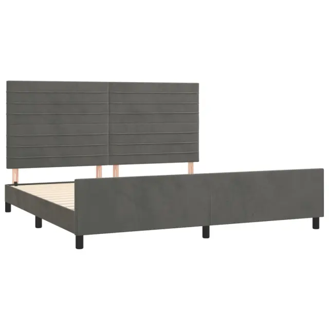 Zagotovite si boljši spanec s tem posteljnim okvirjem z vzglavjem! Je prijeten dodatek za vsako spalnico. Mehak žamet: Žamet je mehka in razkošna tkanina, ki jo prepoznamo po gostem kupu enakomerno rezanih gladkih vlaken. Žametna tkanina ima značilen mehak občutek, zaradi česar je prijetna na dotik.Nastavljiva višina: Vzglavje postelje je nastavljivo po višini po vaših željah.Podporne noge: Postelja je podprta s čvrstimi nogami, ki zagotavljajo njeno stabilnost, varnost in trdnost.Letvice iz vezanega lesa: Letvice iz vezanega lesa omogočajo dobro porazdelitev teže in zagotavljajo, da vzmetnica ostane na mestu ob vsakem zasuku in obračanju med spanjem.Udobna opora: To vzglavje za posteljo vam zagotavlja odlično oporo za hrbet, ko sedite na postelji in berete ali gledate filme. Opomba:Paket vsebuje samo posteljni okvir. Vzmetnica ni priložena. V naši trgovini si lahko ogledate ustrezne vzmetnice.Vsakemu izdelku je priložen priročnik za enostavno sestavljanje.Barva: Temno sivaMaterial: Žamet (100 % poliester), trden macesnov les, vezan les, inženirski lesMaterial polnila: PenaCelotne dimenzije: 203 x 206 x 118/128 cm (D x Š x V)Velikost primerne vzmetnice: 200 x 200 cm (Š x D) (vzmetnica ni priložena)Paket vsebuje:1 x Posteljni okvir z vznožjem1 x Vzglavje