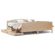 Zagotovite si boljši spanec s tem posteljnim okvirjem! Je prijeten dodatek za vsako spalnico. Stabilen in dolgotrajen okvir: Trdna borovina je znana po svoji trdnosti in trajnosti. Ravni vzorci in značilni vozli prispevajo k njenemu rustikalnemu čaru.Podnožje z letvami za optimalno podporo: Za podporo in zračnost ležišča je posteljni okvir opremljen z letvenim dnom.Vsestransko vzglavje: Ta posteljni okvir je opremljen z vzglavjem, ki zagotavlja odlično oporo hrbtu, ko sedite v postelji in berete ali gledate televizijo, hkrati pa služi tudi kot dekorativni element.Popolnoma izkoriščen prostor: Ta posteljni okvir ima spodaj dva predala, ki omogočata shranjevanje predmetov, kot so dodatna posteljnina, sezonska oblačila in igrače.Preprosto manevriranje: Ta predal za shranjevanje pod posteljo ima štiri kolesa, ki zagotavljajo gladko in lahkotno manevriranje pri drsenju pod posteljo in izpod nje. Dobro je vedeti:Vzmetnica ni priložena tej postelji. Ponujamo različno izbiro ležišč. V naši trgovini si lahko ogledate ustrezne vzmetnice.Potrebno sestavljanje: DaPosteljni okvir:Material: Trdna borovina (neobdelana)Material letvic: Vezan lesDimenzije: 205,5 x 185,5 x 74,5 cm (D x Š x V)Velikost primerne vzmetnice: 180 x 200 cm (Š x D) (vzmetnica ni priložena)Predal:Material: Trdna borovina (neobdelana)Zunanje dimenzije: 95 x 55 x 16 cm (Š x G x V)Notranje dimenzije: 86,5 x 52,5 x 10 cm (Š x G x V)Maks. nosilnost (vsaka): 20 kgS štirimi kolesi Paket vsebuje:1 x Posteljni okvir2 x Predal