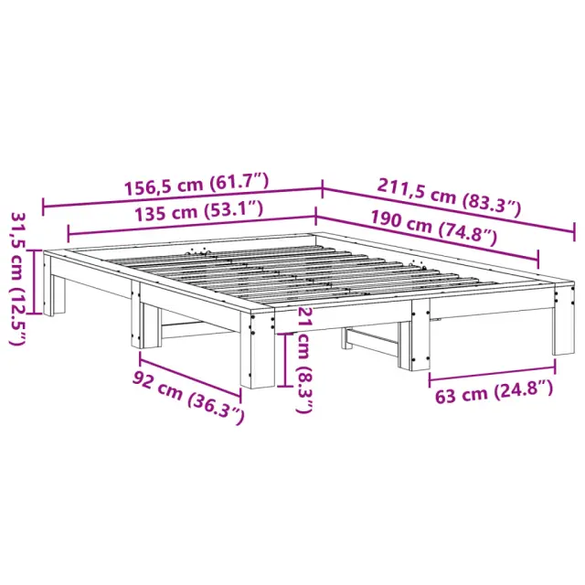Zagotovite si boljši spanec s tem posteljnim okvirjem! Je prijeten dodatek za vsako spalnico. Stabilen in dolgotrajen okvir: Trdna borovina je znana po svoji trdnosti in trajnosti. Ravni vzorci in značilni vozli prispevajo k njenemu rustikalnemu čaru.Podnožje z letvami za optimalno podporo: Za podporo in zračnost ležišča je posteljni okvir opremljen z letvenim dnom.Stabilne in vzdržljive noge: Ta postelja je podprta z robustnimi nogami, ki zagotavljajo stabilnost, varnost in trdnost. Dobro je vedeti:Vzmetnica ni priložena tej postelji. Ponujamo različno izbiro ležišč. V naši trgovini si lahko ogledate ustrezne vzmetnice.Barva: Voščeno rjavaMaterial posteljnega okvirja: Trdna borovinaCelotne dimenzije: 211,5 x 165,5 x 31,5 cm (D x Š x V)Velikost primerne vzmetnice: 135 x 190 cm (Š x D) (vzmetnica ni priložena)Z letvenim podomPotrebno sestavljanje: Da