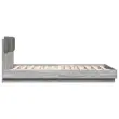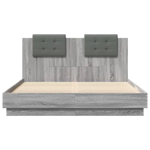 Zagotovite si boljši spanec s tem posteljnim okvirjem z vzglavjem! Je prijeten dodatek za vsako spalnico. Vzdržljiv material: Inženirski les se ponaša z izjemno kakovostjo, gladko površino ter močjo, stabilnostjo in odpornostjo na vlago.Letvice iz vezanega lesa: Letvice iz vezanega lesa omogočajo dobro porazdelitev teže in zagotavljajo, da vzmetnica ostane na mestu ob vsakem zasuku in obračanju med spanjem.Odlična podpora: Vzglavna stranica je napolnjena s peno za izjemno mehkobo in optimalno udobje ter zagotavlja odlično podporo hrbtu, ko sedite v postelji in berete ali gledate televizijo. Dobro je vedeti:Vzmetnica ni priložena tej postelji. Ponujamo različno izbiro ležišč. V naši trgovini si lahko ogledate ustrezne vzmetnice.Barva postelje: Siva sonomaBarva blazine za vzglavje: Temno sivaMaterial posteljnega okvirja: Inženirski les, tkanina (100 % poliester)Material letvic: Vezan lesMaterial polnila blazine za vzglavje: PenaCelotne dimenzije: 203 x 123 x 84 cm (D x Š x V)Velikost primerne vzmetnice: 120 x 200 cm (Š x D) (vzmetnica ni priložena)Velikost blazine za vzglavje: 47 x 32 cm (D x Š)Potrebno sestavljanje: Da
