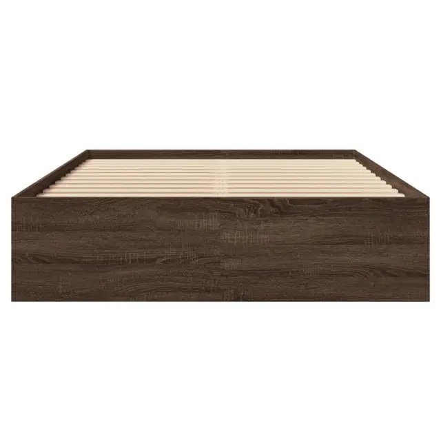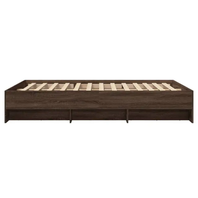 Zagotovite si boljši spanec s tem posteljnim okvirjem! Je prijeten dodatek za vsako spalnico. Vzdržljiv material: Posteljni okvir je izdelan iz inženirskega lesa. Inženirski les se ponaša z izjemno kakovostjo, gladko površino ter močjo, stabilnostjo in odpornostjo na vlago.Podnožje z letvami za optimalno podporo: Za podporo in zračnost ležišča je posteljni okvir opremljen z letvenim dnom.Funkcija shranjevanja: Ta posteljni okvir ima odprte predelke za dobro organizacijo revij, knjig, igrač in drugih manjših predmetov. Dobro je vedeti:Vzmetnica ni priložena tej postelji. Ponujamo različno izbiro ležišč. V naši trgovini si lahko ogledate ustrezne vzmetnice.Barva: Rjav hrastMaterial posteljnega okvirja: Inženirski lesMaterial letvic: Vezan lesCelotne dimenzije: 203 x 143 x 35 cm (D x Š x V)Dimenzije predelka (vsak): 68,5/60 x 18,5 x 15 cm (D x Š x V)Velikost primerne vzmetnice: 140 x 200 cm (Š x D) (vzmetnica ni priložena)Potrebno sestavljanje: Da