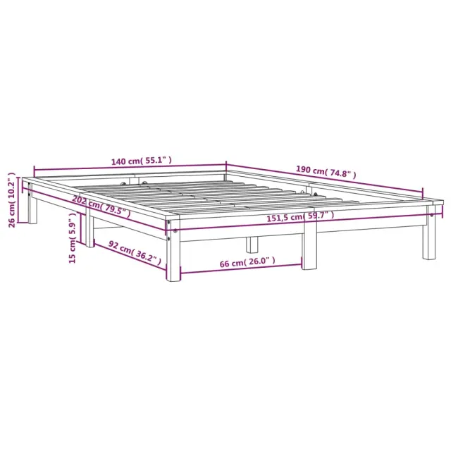 Dodajte svoji spalnici moderen pridih s tem klasičnim lesenim posteljnim okvirjem! To je praktičen in dekorativen dodatek za vaše notranje prostore. Trdna borovina: Trdna borovina je čudovit naravni material. Borovina ima ravne vzorce, grče pa dajejo materialu njegov značilen, rustikalen videz.Močan in stabilen okvir: Lesen okvir omarice zagotavlja trdnost in stabilnost.Trdne letvice: Letvice iz vezanega lesa omogočajo dobro porazdelitev teže in zagotavljajo, da vzmetnica ostane na mestu ob vsakem zasuku in obračanju med spanjem. Opomba:Paket vsebuje samo posteljni okvir. Vzmetnica ni priložena. V naši trgovini si lahko ogledate ustrezne vzmetnice.Ta posteljni okvir je primeren za vzmetnico velikosti 140 x 190 cm.Vsakemu izdelku je priložen priročnik za enostavno sestavljanje.Barva: BelaMaterial: Trdna borovina Celotne dimenzije: 202 x 151,5 x 26 cm (D x Š x V)Velikost primerne vzmetnice: 140 x 190 cm (Š x D) (vzmetnica ni priložena)
