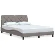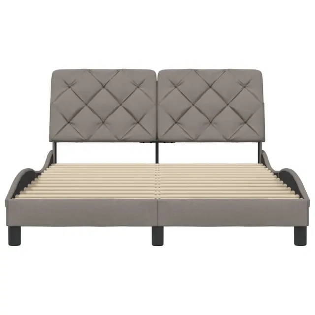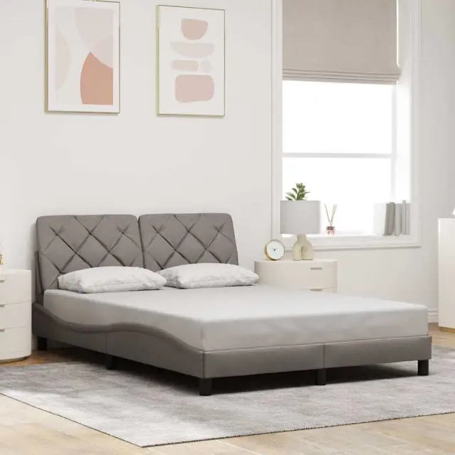 Zagotovite si boljši spanec s tem posteljnim okvirjem! Je prijeten dodatek za vsako spalnico. Mehak in trpežen material: Tkanina iz poliestra ponuja kombinacijo mehkobe, zračnosti in trpežnosti ter vam zagotavlja popolno udobje in prijetnost.Letvice za optimalno podporo: Ta posteljni okvir je opremljen z letvicami, ki zagotavljajo osnovno podporo in zračnost vašega ležišča.Vsestransko vzglavje: Ta posteljni okvir je opremljen z vzglavjem, ki zagotavlja odlično oporo hrbtu, ko sedite v postelji in berete ali gledate televizijo, hkrati pa služi tudi kot dekorativni element.Priročna zasnova: Vzglavna stranica ima zadrgo za preprosto namestitev, pripenjala na zadnji strani pa se lahko uporabijo za pritrditev LED lučk.Valovita stranica: Valoviti videz posteljnega okvirja je eleganten in prefinjen. Dekorju v vašem domu dodaja sodoben in eleganten pridih ter tako postane osrednja točka spalnice. Dobro je vedeti:Vzmetnica ni priložena tej postelji. Ponujamo različno izbiro ležišč. V naši trgovini si lahko ogledate ustrezne vzmetnice.Posteljni okvir:Barva: TaupeMaterial: Tkanina (100 % poliester), kovina, vezan les, inženirski lesCelotne dimenzije: 218 x 125 x 74,5 cm (D x Š x V)Velikost primerne vzmetnice: 120 x 200 cm (Š x D) (vzmetnica ni priložena)Oblazinjeno vzglavje:Barva: TaupeMaterial: Blago (100 % poliester)Material polnila: PP vlaknaDimenzije: 122 x 6 x 48 cm (D x Š x V)Paket vsebuje:1 x Posteljni okvir1 x Oblazinjeno vzglavje
