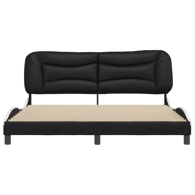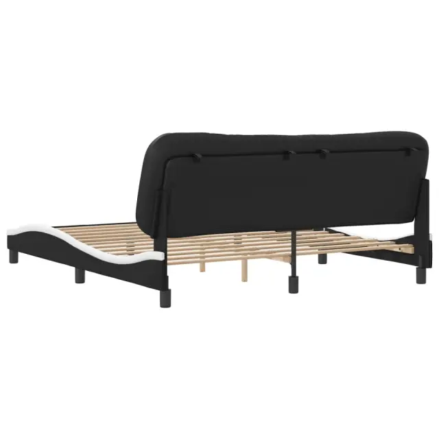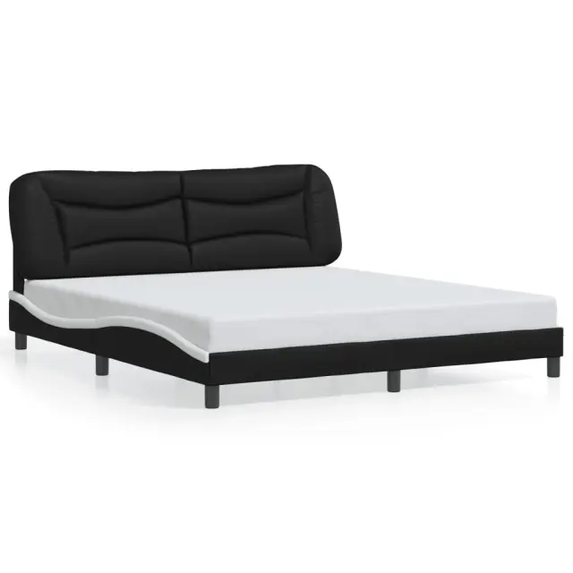 Zagotovite si boljši spanec s tem posteljnim okvirjem z vzglavjem! Je prijeten dodatek za vsako spalnico. Trpežno umetno usnje: Vrhunsko umetno usnje je zelo vzdržljiv material. Je odporno na madeže, zato ga lahko preprosto čistite z vlažno krpo. Gladka površina mu prav tako daje razkošen videz in lepoto pravega usnja.Letvice iz vezanega lesa: Letvice iz vezanega lesa omogočajo dobro porazdelitev teže in zagotavljajo, da vzmetnica ostane na mestu ob vsakem zasuku in obračanju med spanjem.Odlična podpora: Vzglavna stranica je napolnjena s PP vlakni za izjemno mehkobo in optimalno udobje ter zagotavlja odlično podporo hrbtu, ko sedite v postelji in berete ali gledate televizijo.Valovita stranica: Valoviti videz posteljnega okvirja je eleganten in prefinjen. Dekorju v vašem domu dodaja sodoben in eleganten pridih ter tako postane osrednja točka spalnice. Dobro je vedeti:Vzmetnica ni priložena tej postelji. Ponujamo različno izbiro ležišč. V naši trgovini si lahko ogledate ustrezne vzmetnice.Posteljni okvir z vzglavjem:Barva: Črna in belaMaterial: Umetno usnje (75 % polivinilklorid, 5 % bombaž, 20 % poliester), kovina, trdna borovina, vezan lesCelotne dimenzije: 218 x 185 x 74,5 cm (D x Š x V)Velikost primerne vzmetnice: 180 x 200 cm (Š x D) (vzmetnica ni priložena)Oblazinjeno vzglavje:Barva: ČrnaMaterial: Umetno usnje (75 % polivinilklorid, 5 % bombaž, 20 % poliester)Material polnila: PP vlaknaDimenzije: 190 x 15 x 48 cm (D x Š x V)Širina primerne vzmetnice: 180 cmPotrebno sestavljanje: DaPaket vsebuje:1 x Posteljni okvir z vzglavjem1 x Oblazinjeno vzglavje