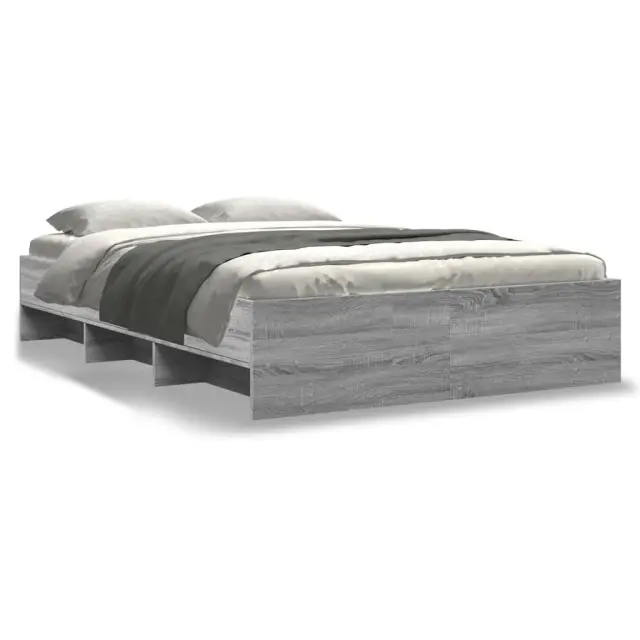 Zagotovite si boljši spanec s tem posteljnim okvirjem! Je prijeten dodatek za vsako spalnico. Vzdržljiv material: Posteljni okvir je izdelan iz inženirskega lesa. Inženirski les se ponaša z izjemno kakovostjo, gladko površino ter močjo, stabilnostjo in odpornostjo na vlago.Podnožje z letvami za optimalno podporo: Za podporo in zračnost ležišča je posteljni okvir opremljen z letvenim dnom.Funkcija shranjevanja: Ta posteljni okvir ima odprte predelke za dobro organizacijo revij, knjig, igrač in drugih manjših predmetov. Dobro je vedeti:Vzmetnica ni priložena tej postelji. Ponujamo različno izbiro ležišč. V naši trgovini si lahko ogledate ustrezne vzmetnice.Barva: Siva sonomaMaterial posteljnega okvirja: Inženirski lesMaterial letvic: Vezan lesCelotne dimenzije: 203 x 123 x 35 cm (D x Š x V)Dimenzije predelka (vsak): 68,5/60 x 18,5 x 15 cm (D x Š x V)Velikost primerne vzmetnice: 120 x 200 cm (Š x D) (vzmetnica ni priložena)Potrebno sestavljanje: Da