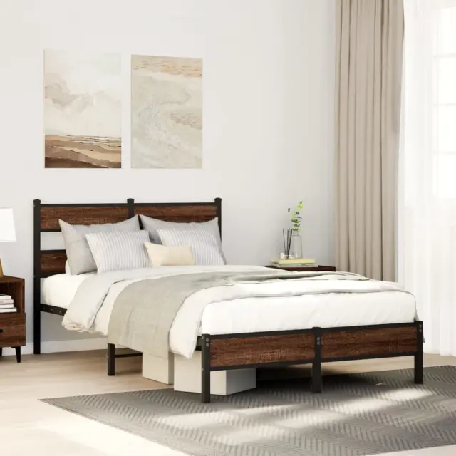 Če iščete trpežen posteljni okvir za svojo spalnico, je ta klasični posteljni okvir z elegantnim in brezčasnim dizajnom popolna izbira!Robustna kovinska konstrukcija: Okvir postelje je izdelan iz jekla. Jeklo je izjemno trd in močan material, ki zagotavlja izjemno trdnost in stabilnost.Kovinske letvice in noge: Kovinski posteljni okvir je opremljen s kovinskimi letvami in sredinskimi nogami, ki ležišču nudijo nujno potrebno oporo in zračnost.Dodaten prostor za shranjevanje: Za vaše udobje ima postelja za goste pod seboj tudi dodaten prostor, da vaše škatle za shranjevanje ne bodo vidne.Odlična opora: Vzglavje zagotavlja odlično oporo hrbtu, ko sedite v postelji in berete ali gledate televizijo.Dobro je vedeti:Vzmetnica ni priložena tej postelji. Ponujamo različno izbiro ležišč. V naši trgovini si lahko ogledate ustrezne vzmetnice.Za čim lažjo montažo je vsakemu izdelku priložen priročnik.Barva: Rjav hrastMaterial: Jeklo, inženirski lesCelotne dimenzije: 196 x 125 x 91,5 cm (D x Š x V)Višina prostora pod posteljo: 28 cmVelikost primerne vzmetnice: 120 x 190 cm (Š x D) (vzmetnica ni priložena)Potrebno sestavljanje: Da