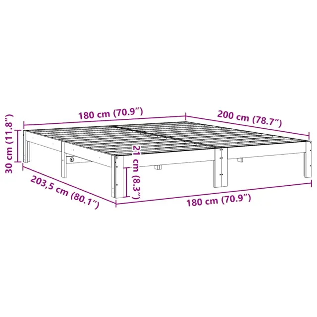 Zagotovite si boljši spanec s tem posteljnim okvirjem! Je prijeten dodatek za vsako spalnico. Stabilen in dolgotrajen okvir: Trdna borovina je znana po svoji trdnosti in trajnosti. Ravni vzorci in značilni vozli prispevajo k njenemu rustikalnemu čaru.Vzmetna škatla ni potrebna: Okvir postelje ima letveno podlago, ki zagotavlja odlično oporo in zračnost za ležišče, zato ni potrebna vzmetnica.Stabilne in vzdržljive noge: Ta postelja je podprta z robustnimi nogami, ki zagotavljajo stabilnost, varnost in trdnost.Inovativna povezovalna zasnova: Okvir za posteljo je zasnovan s predhodno izvrtanimi luknjami, tako da lahko zlahka združite dva posteljna okvirja in ustvarite zakonsko posteljo. Poleg tega lahko dodate več enojnih postelj in ustvarite veliko družinsko posteljo za tri, štiri ali več oseb, ki je idealna za družine, goste ali skupne bivalne prostore.Material posteljnega okvirja: Trdna borovina (neobdelana)Material letvic: Vezan lesDimenzije: 203,5 x 180 x 30 cm (D x Š x V)Višina prostora pod posteljo: 21 cmVelikost primerne vzmetnice: 180 x 200 cm (Š x D) (vzmetnica ni priložena)Maks. nosilnost: 200 kgPredhodno izvrtane luknje za enostavno povezovanje v družinsko posteljoPotrebno sestavljanje: Da