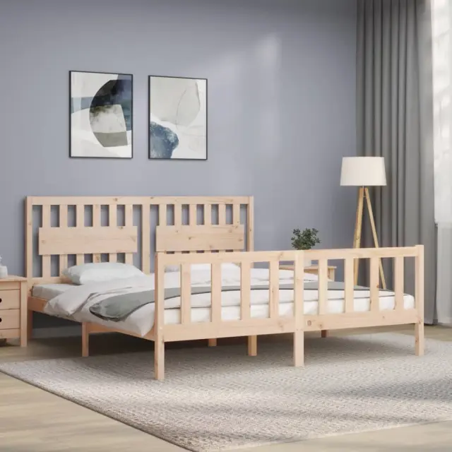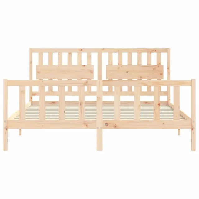 S tem lesenim posteljnim okvirjem lahko uživate v odličnem spancu! To je praktičen in dekorativen dodatek za vaše notranje prostore. Vzdržljiv material: Trdna borovina je čudovit naravni material. Borovina ima ravne vzorce, grče pa dajejo materialu njegov značilen, rustikalen videz. Ta postelja je izdelana iz trdnega borovega lesa, zato je trpežna in vzdržljiva.Letvice iz vezanega lesa: Letvice iz vezanega lesa zagotavljajo dobro porazdelitev teže, kar ležišču zagotavlja prepotrebno oporo in zračnost.Funkcionalno vzglavje in podnožje: Vzglavje in podnožje lesene postelje ohranjata ležišče na mestu. Poleg tega vzglavje zagotavlja odlično oporo hrbtu, ko sedite v postelji in berete ali gledate televizijo. Dobro je vedeti: Vzmetnica ni priložena tej postelji. Ponujamo različno izbiro ležišč. V naši trgovini si lahko ogledate ustrezne vzmetnice.Nekateri deli vzglavja so zaradi prostorskih omejitev zapakirani v škatlah v okvirju postelje.Material: Trdna borovina (neobdelana)Celotne dimenzije: 205,5 x 185,5 x 100 cm (D x Š x V)Višina prostora pod posteljo: 21 cmPrimerna velikost vzmetnice (vzmetnica ni vključena): 180 x 200 cm (Š x D) (6FT Super King)Potrebno sestavljanje: Da
