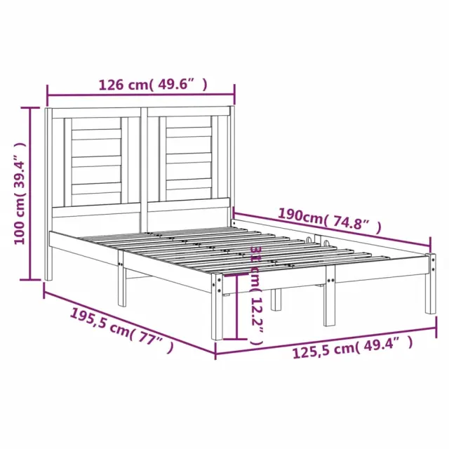 Ustvarite moderno spalnico s tem lesenim posteljnim okvirjem! To je praktičen in dekorativen dodatek za vaše notranje prostore. Vrhunski material: trdna borovina je čudovit naravni material. Borovina ima ravne vzorce, grče pa dajejo materialu njegov značilen, rustikalen videz.Močan in stabilen okvir: Leseni okvirji zagotavljajo trdnost in stabilnost.Udobno vzglavje: Klasično vzglavje omogoča udoben počitek med branjem ali gledanjem filma.Privlačen dizajn: Vzglavje je oblikovano tako, da je dekorativno in praktično. Dodaja edinstven stil in udobje. Dobro je vedeti:Paket vsebuje samo posteljni okvir. Vzmetnica ni priložena. V naši trgovini si lahko ogledate ustrezne vzmetnice.Nekateri deli vzglavja so zaradi prostorskih omejitev zapakirani v škatlah v okvirju postelje.Ta posteljni okvir je primeren za vzmetnico velikosti 120 x 190 cm (4FT Small Double).Barva: BelaMaterial: Trdna borovinaDimenzije posteljnega okvirja: 195,5 x 125,5 x 31 cm (D x Š x V)Dimenzije vzglavja: 126 x 4 x 100 cm (Š x G x V)Velikost primerne vzmetnice: 120 x 190 cm (Š x D) (4FT Small Double) (vzmetnica ni priložena)Potrebno sestavljanje: DaPaket vsebuje:1 x Posteljni okvir1 x Vzglavje