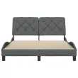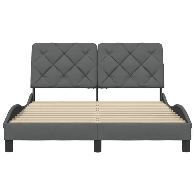 Zagotovite si boljši spanec s tem posteljnim okvirjem! Je prijeten dodatek za vsako spalnico. Mehak in trpežen material: Tkanina iz poliestra ponuja kombinacijo mehkobe, zračnosti in trpežnosti ter vam zagotavlja popolno udobje in prijetnost.Letvice za optimalno podporo: Ta posteljni okvir je opremljen z letvicami, ki zagotavljajo osnovno podporo in zračnost vašega ležišča.Vsestransko vzglavje: Ta posteljni okvir je opremljen z vzglavjem, ki zagotavlja odlično oporo hrbtu, ko sedite v postelji in berete ali gledate televizijo, hkrati pa služi tudi kot dekorativni element.Priročna zasnova: Vzglavna stranica ima zadrgo za preprosto namestitev, pripenjala na zadnji strani pa se lahko uporabijo za pritrditev LED lučk.Valovita stranica: Valoviti videz posteljnega okvirja je eleganten in prefinjen. Dekorju v vašem domu dodaja sodoben in eleganten pridih ter tako postane osrednja točka spalnice. Dobro je vedeti:Vzmetnica ni priložena tej postelji. Ponujamo različno izbiro ležišč. V naši trgovini si lahko ogledate ustrezne vzmetnice.Posteljni okvir:Barva: Temno sivaMaterial: Tkanina (100 % poliester), kovina, vezan les, inženirski lesCelotne dimenzije: 218 x 145 x 74,5 cm (D x Š x V)Velikost primerne vzmetnice: 140 x 200 cm (Š x D) (vzmetnica ni priložena)Oblazinjeno vzglavje:Barva: Temno sivaMaterial: Blago (100 % poliester)Material polnila: PP vlaknaDimenzije: 142 x 6 x 48 cm (D x Š x V)Paket vsebuje:1 x Posteljni okvir1 x Oblazinjeno vzglavje