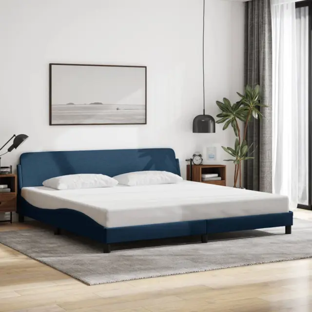 Zagotovite si boljši spanec s tem posteljnim okvirjem z vzglavjem! Je prijeten dodatek za vsako spalnico. Trpežno blago: Blago zagotavlja preprost in čist videz, poleg tega pa je zračno in trpežno.Podporne noge: Postelja je podprta s čvrstimi nogami, ki zagotavljajo njeno stabilnost, varnost in trdnost.Letvice iz vezanega lesa: Letvice iz vezanega lesa omogočajo dobro porazdelitev teže in zagotavljajo, da vzmetnica ostane na mestu ob vsakem zasuku in obračanju med spanjem.Udobna opora: To vzglavje za posteljo vam zagotavlja odlično oporo za hrbet, ko sedite na postelji in berete ali gledate filme.Valovita stranica: Valoviti videz posteljnega okvirja je eleganten in prefinjen. Dekorju v vašem domu dodaja sodoben in eleganten pridih ter tako postane osrednja točka spalnice. Dobro je vedeti:Vzmetnica ni priložena tej postelji. Ponujamo različno izbiro ležišč. V naši trgovini si lahko ogledate ustrezne vzmetnice.Barva: ModraMaterial: Tkanina (100 % poliester), kovina, trdna borovina, vezan lesCelotne dimenzije: 218 x 205 x 74,5 cm (D x Š x V)Velikost primerne vzmetnice: 200 x 200 cm (Š x D) (vzmetnica ni priložena)Potrebno sestavljanje: Da
