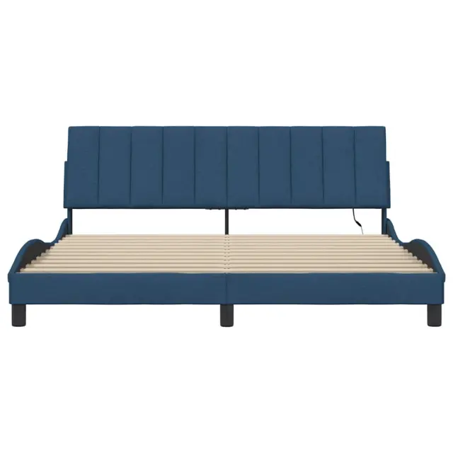 S tem posteljnim okvirjem z vzglavnikom si zagotovite mirnejši spanec! Trpežno blago: Blago zagotavlja preprost in čist videz, poleg tega pa je zračno in trpežno.Podporne noge: Postelja je podprta s čvrstimi nogami, ki zagotavljajo njeno stabilnost, varnost in trdnost.Letvice iz vezanega lesa: Letvice iz vezanega lesa omogočajo dobro porazdelitev teže in zagotavljajo, da vzmetnica ostane na mestu ob vsakem zasuku in obračanju med spanjem.Odlična podpora: Vzglavna stranica je napolnjena s PP vlakni za izjemno mehkobo in optimalno udobje ter zagotavlja odlično podporo hrbtu, ko sedite v postelji in berete ali gledate televizijo.LED osvetlitev za prijeten ambient: To posteljo odlikuje LED osvetlitev, ki jo je mogoče preprosto nastaviti in tako ustvariti posebno svetlobno predstavo. Prilagodite lahko načine, barve in svetlost ter tako izboljšate vzdušje v notranjem prostoru. Dobro je vedeti:Vzmetnica ni priložena tej postelji. Ponujamo različno izbiro ležišč. V naši trgovini si lahko ogledate ustrezne vzmetnice.Izdelek ima priključek USB, ki zahteva certificiran vir napajanja 5 V USB (ni priložen).Režete lahko samo del s simbolom škarij in samo del z USB bo deloval kot prej.Posteljni okvir:Barva: ModraMaterial: Tkanina (100 % poliester), kovina, trdna borovina, vezan lesCelotne dimenzije: 218 x 185 x 74,5 cm (D x Š x V)Velikost primerne vzmetnice: 180 x 200 cm (Š x D) (vzmetnica ni priložena)Potrebno sestavljanje: DaOblazinjeno vzglavje:Barva: ModraMaterial: Blago (100 % poliester)Material polnila: PP vlaknaDimenzije: 180 x 3 x 45 cm (D x Š x V)LED trak s silikonsko cevjo in pipo:Dolžina: 55 cmNapetost: DC 5 VDolžina kabla USB : 150 cmDolžina električnega kabla: 30 cmIP ocena: IP65S simbolom za rezanje s škarjamiPaket vsebuje:1 x Posteljni okvir1 x Oblazinjeno vzglavje2 x LED trak Vir svetlobe tega izdelka ni zamenljiv. Ko vir svetlobe doseže konec življenjske dobe, izdelek zamenjajte. Samo za notranjo uporabo, ne uporabljajte tega izdelka na prostem. Izdelek ima USB priključek, vendar certificiranega 5V USB napajalnika ni priloženega. Prosimo, uporabite samo certificiran DC 5V vhod. Višja napetost lahko povzroči pregrevanje, kar lahko povzroči poškodbe naprave in potencialno nevarnost pregrevanja in požara. Fleksibilnega kabla nizkonapetostnih luči ni mogoče zamenjati, in ne uporabljajte nizkonapetostnih luči, če je kabel poškodovan. Ne povežite LED svetilke s certificiranim 5V USB napajalnikom med namestitvijo in vzdrževanjem. Te naprave ne smejo uporabljati otroci, mlajši od 14 let, in osebe z zmanjšanimi fizičnimi, čutnimi ali duševnimi sposobnostmi ali pomanjkanjem izkušenj in znanja. NE upoštevajte tega izdelka v prisotnosti eksplozivnih snovi, kot so vnetljivi tekočine, plini in prah ali pri ekstremnih temperaturah nad 50 stopinjami Celzija.